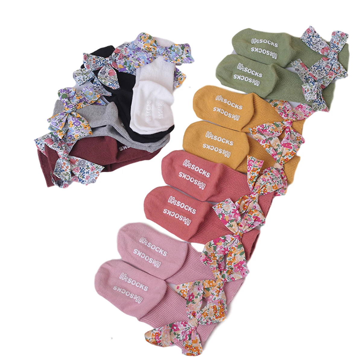 En venta Calcetines acanalados con letras y estampado de flores para niñas, medias transpirables cálidas y antideslizantes para decoración de lazo, de 0 a 5 años wxQKMmbQJxn